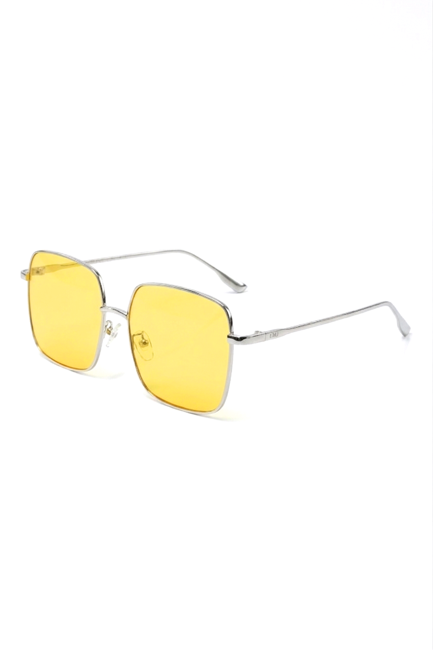 Grote Rechthoek Zonnebril Geel Zilver Oversized Designer Vierkant