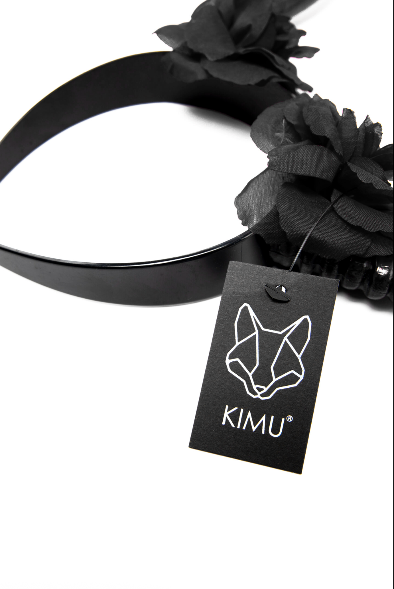 • Zwarte kunstoffen haarband met zwarte hoorns en zwarte rozen,