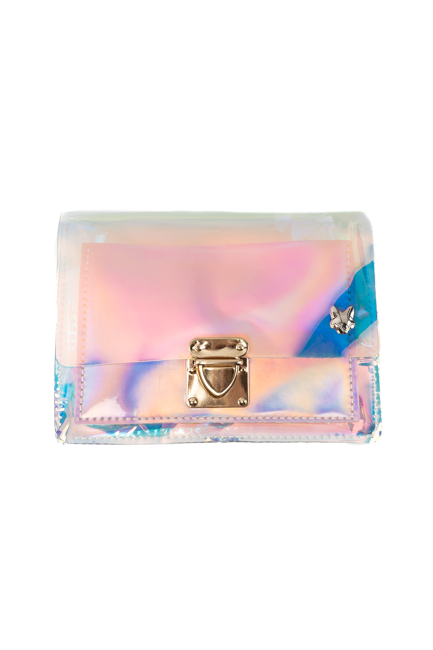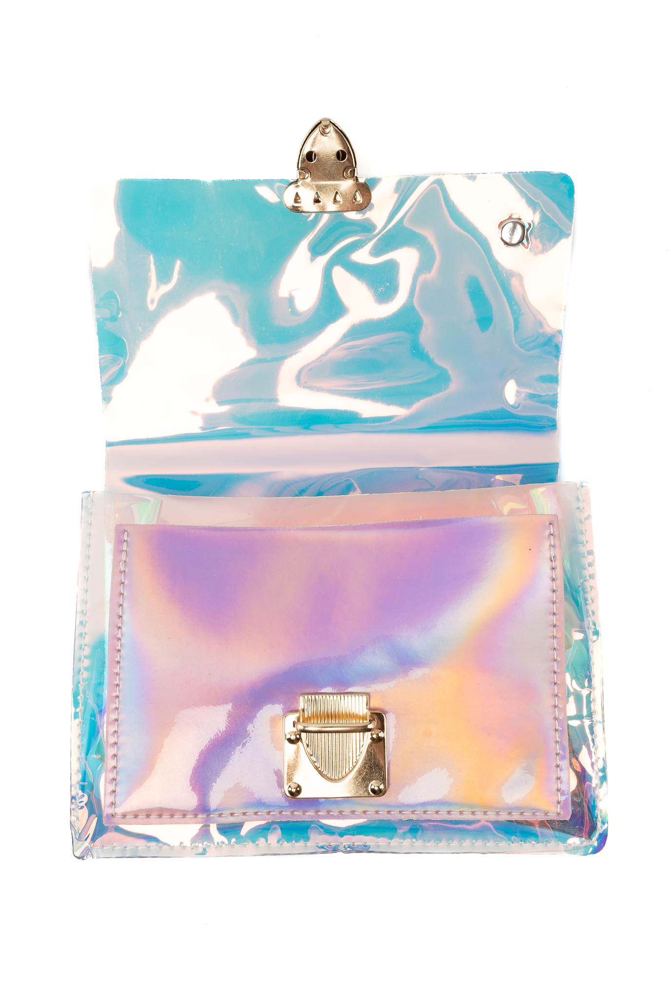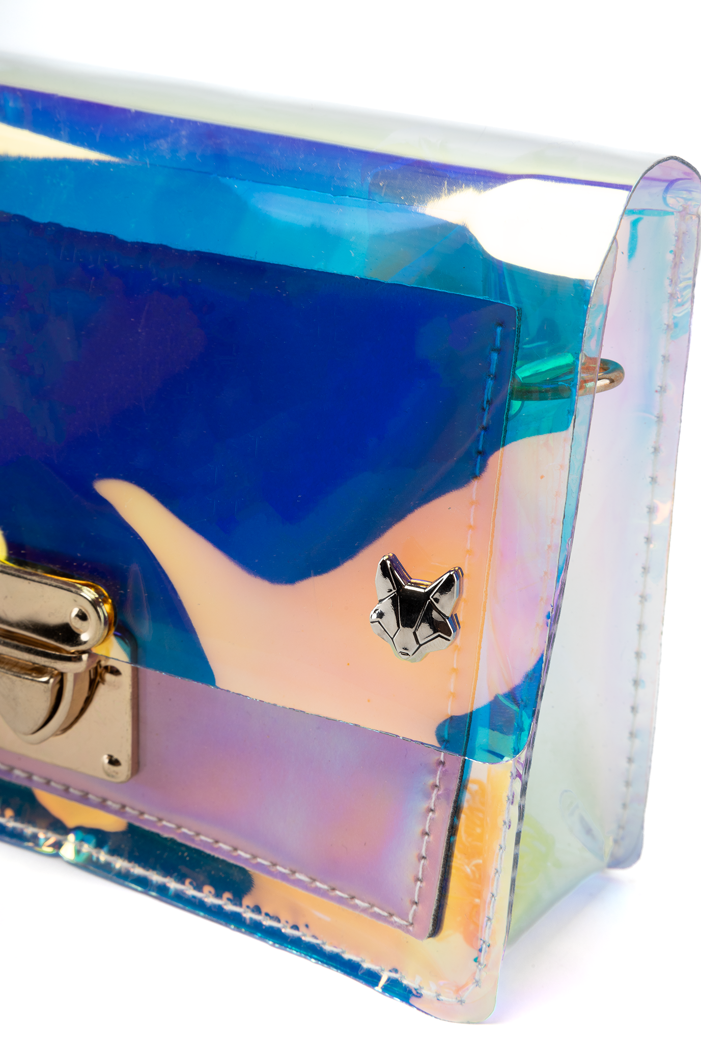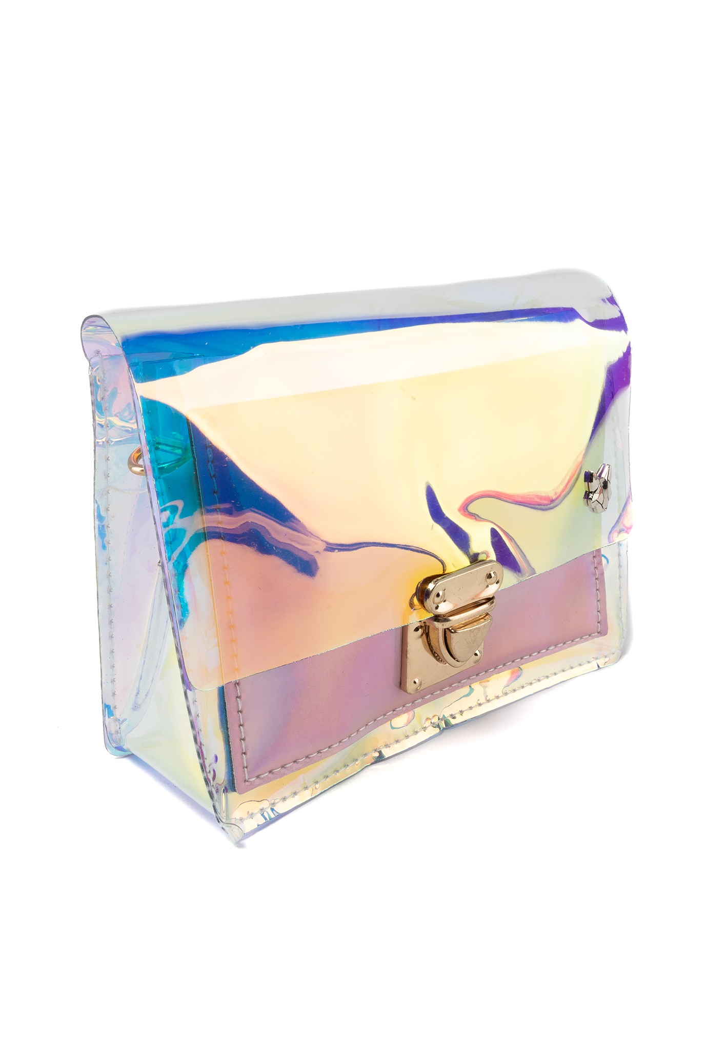 - Doorschijnend, iridescent, holografisch heuptasje,