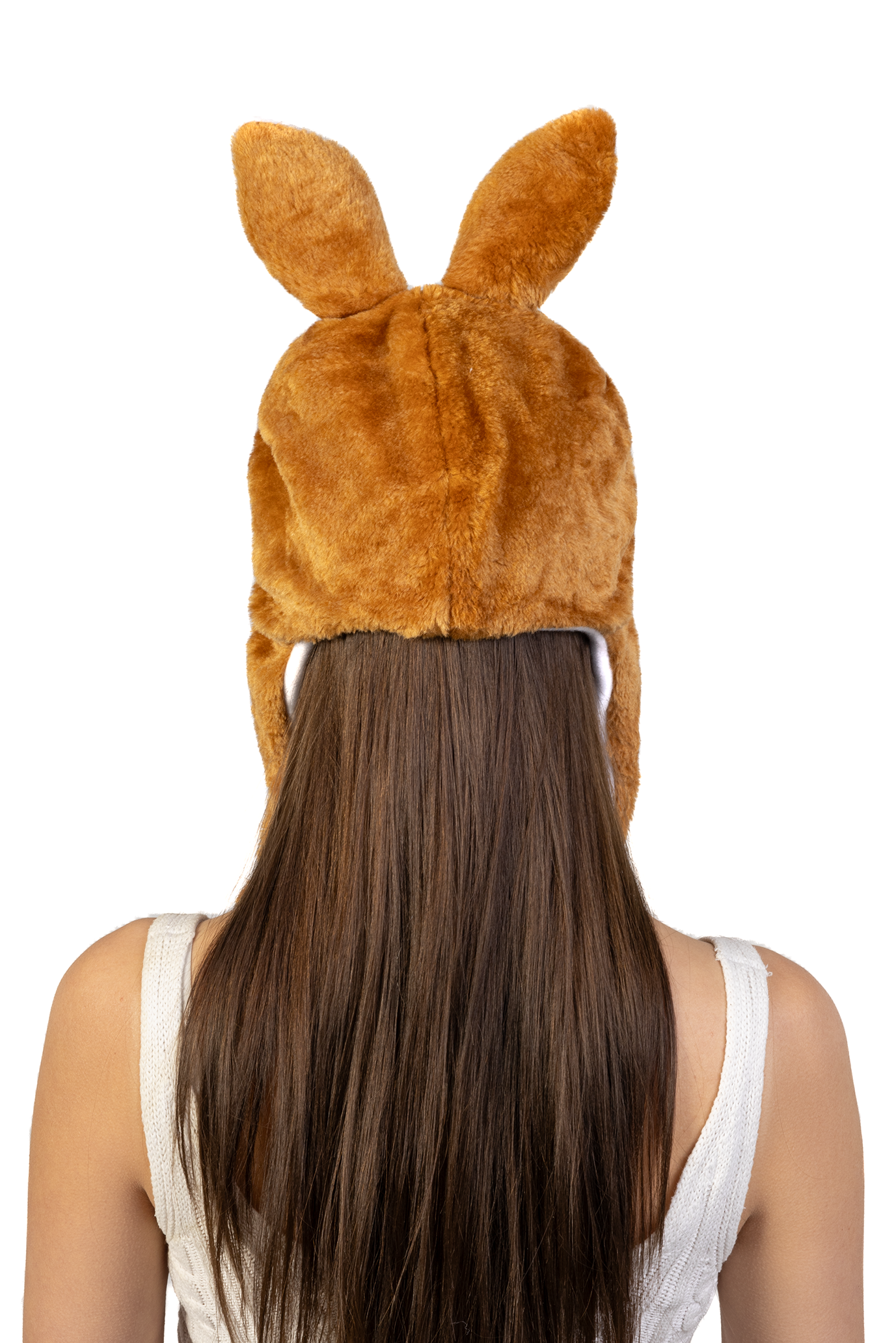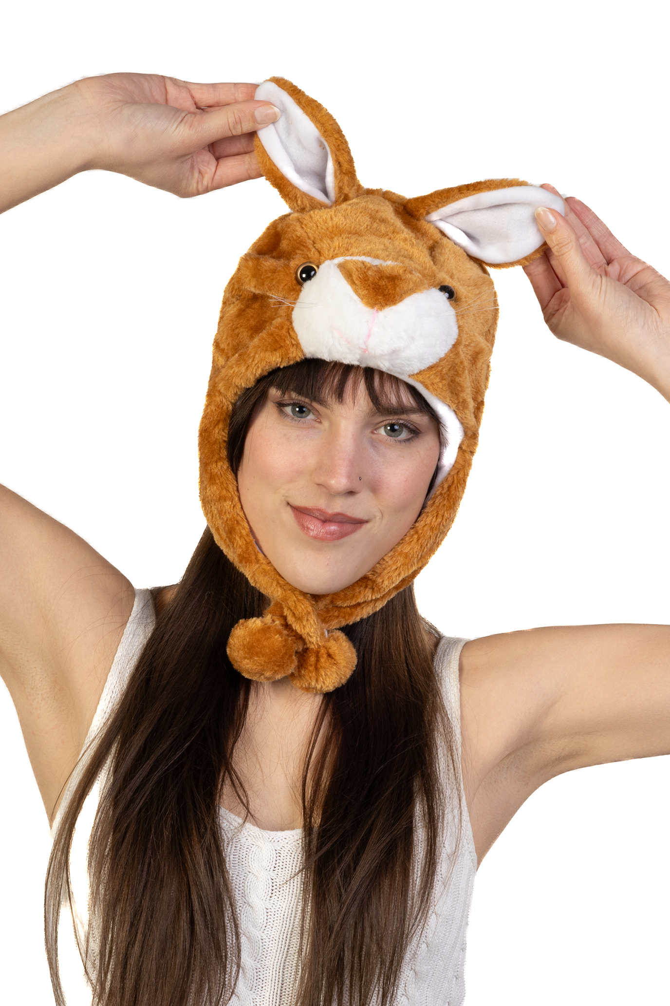 Maak een leuk én schattig statement met deze unieke konijnenmuts! Trotseer de kou in stijl en koop hier jouw Konijn Bruin Muts Flappen Laplander Oortjes Paashaas Pasen Pluche!