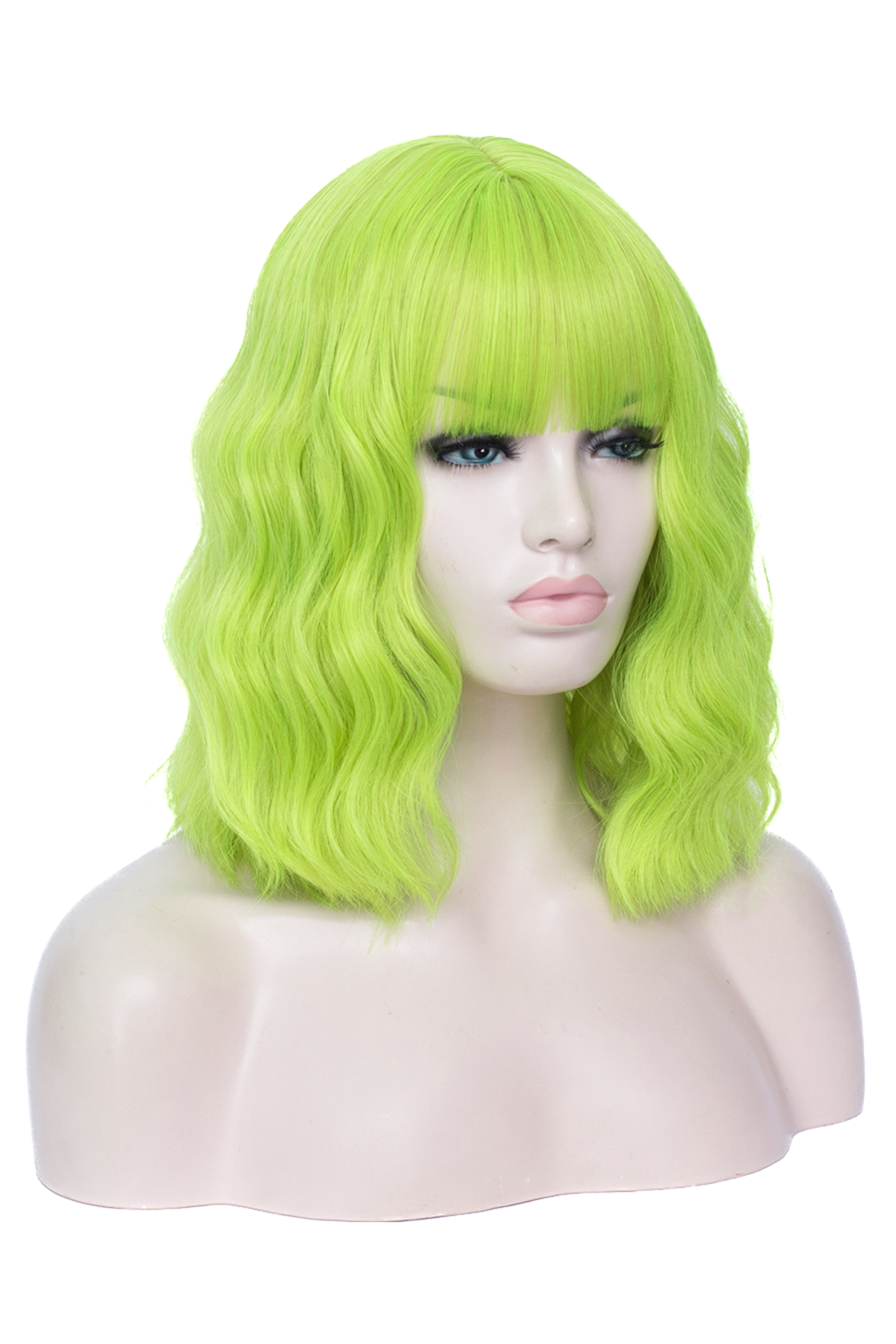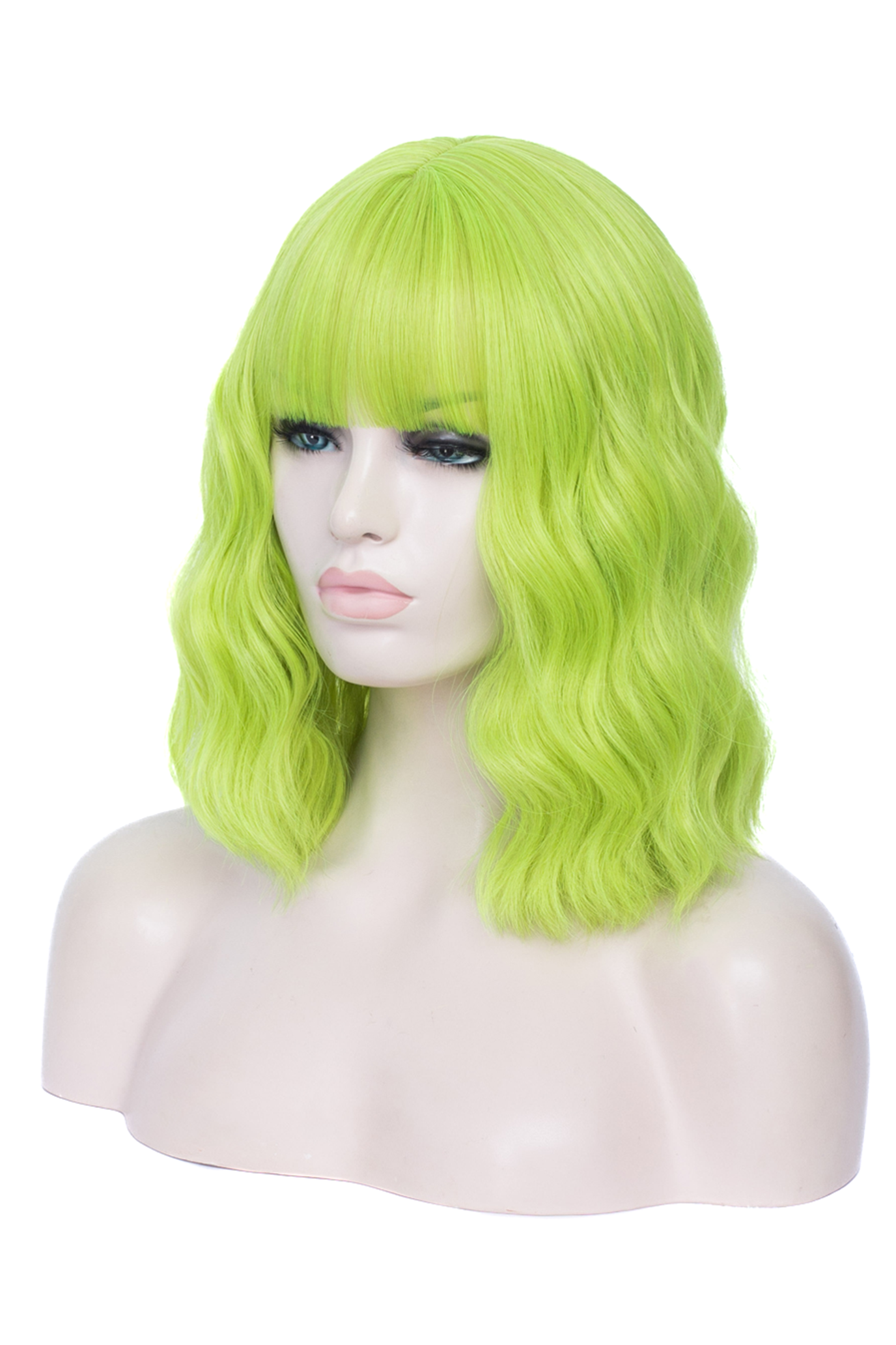 Limegroene Pruik Schouderlengte Rechte Pony Krullen Lichtgroen kopen?