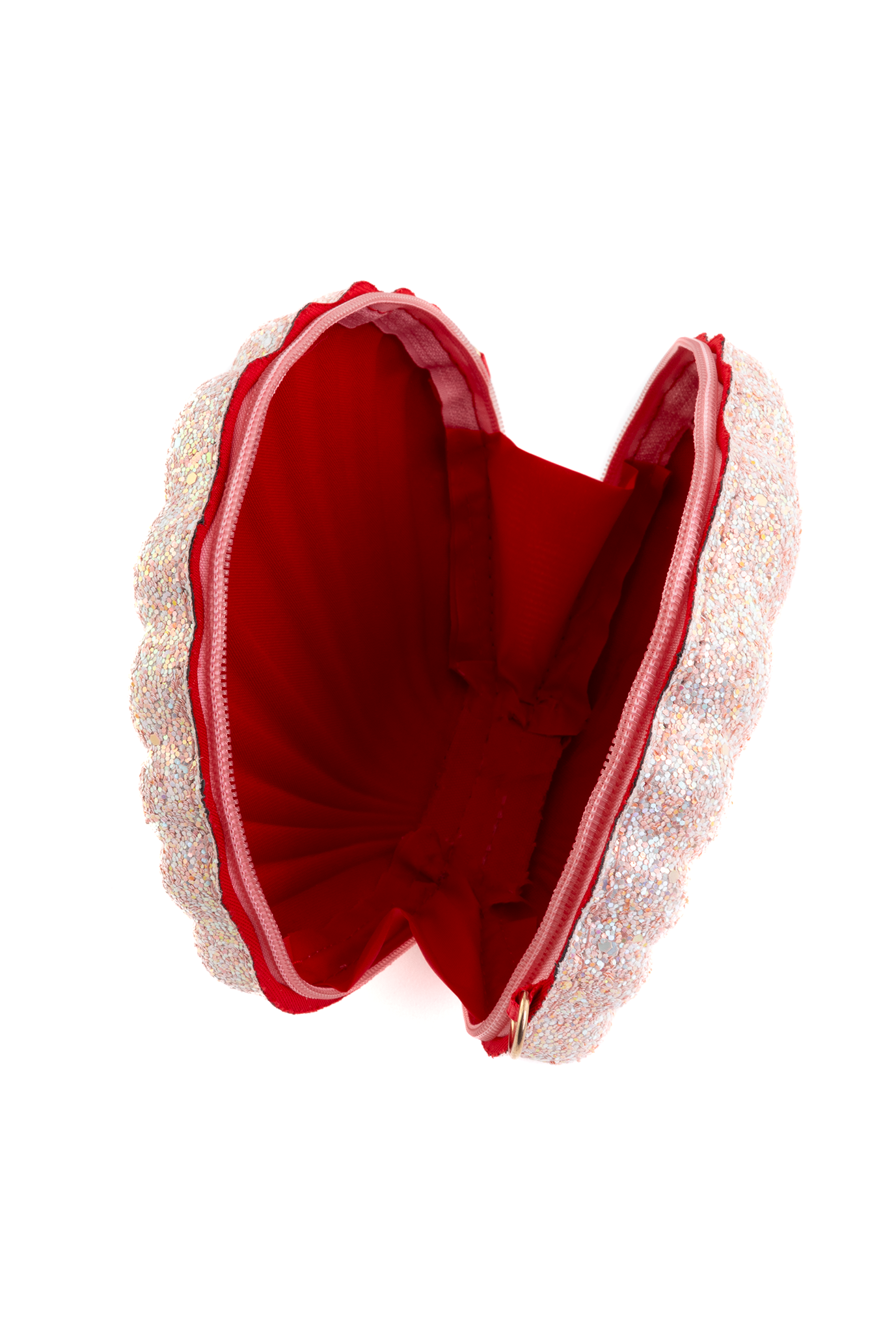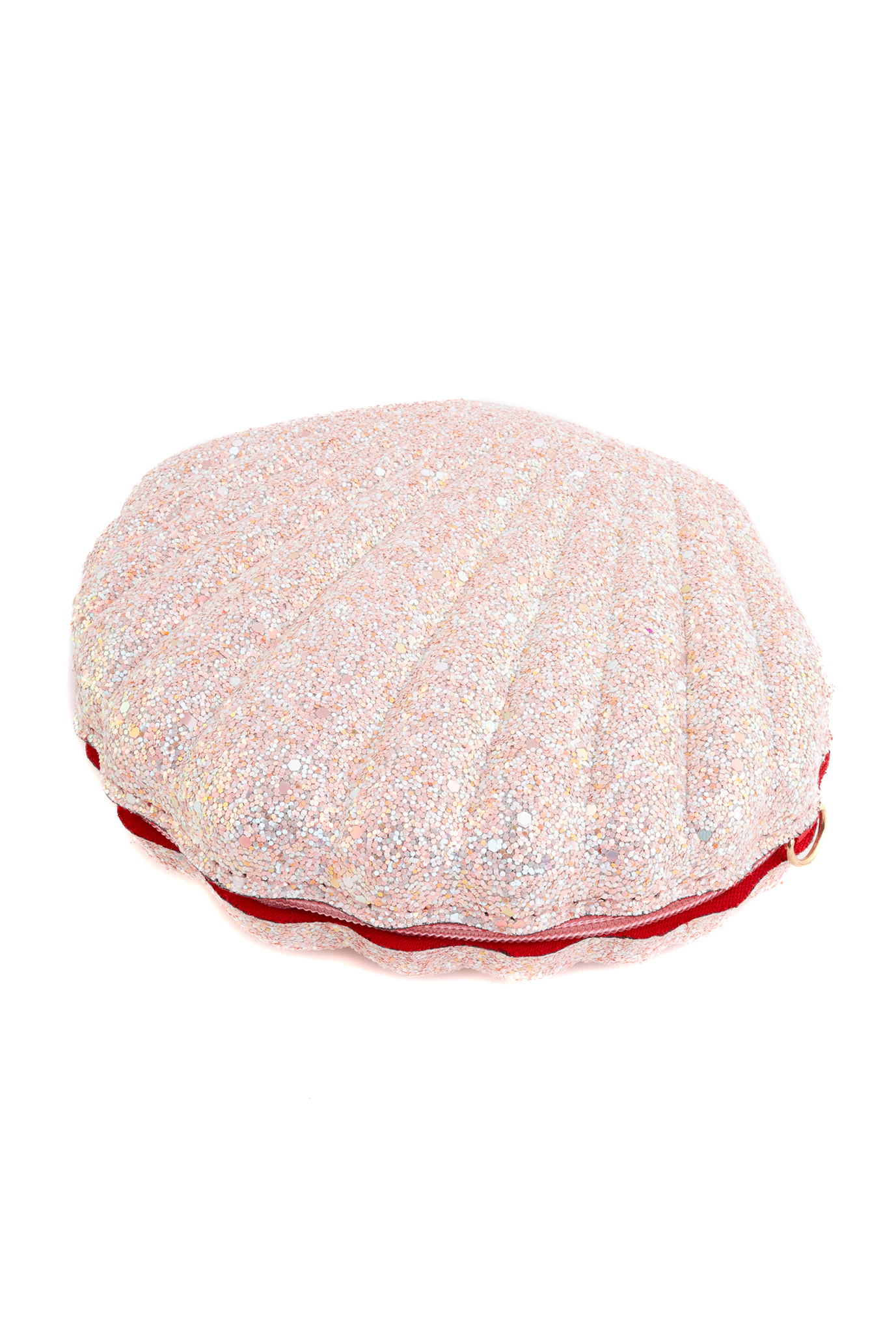• Tasje in de vorm van een schelp, gemaakt van hard kunststof met glitters,
