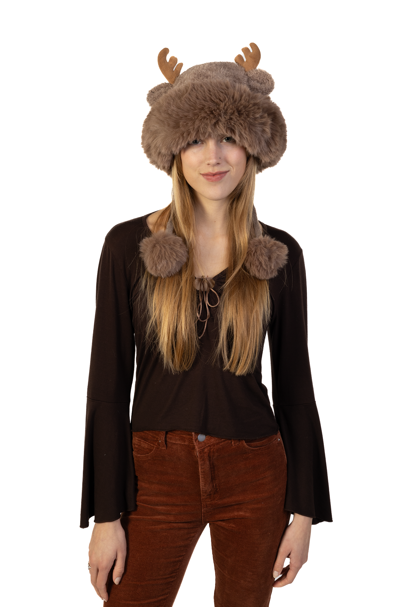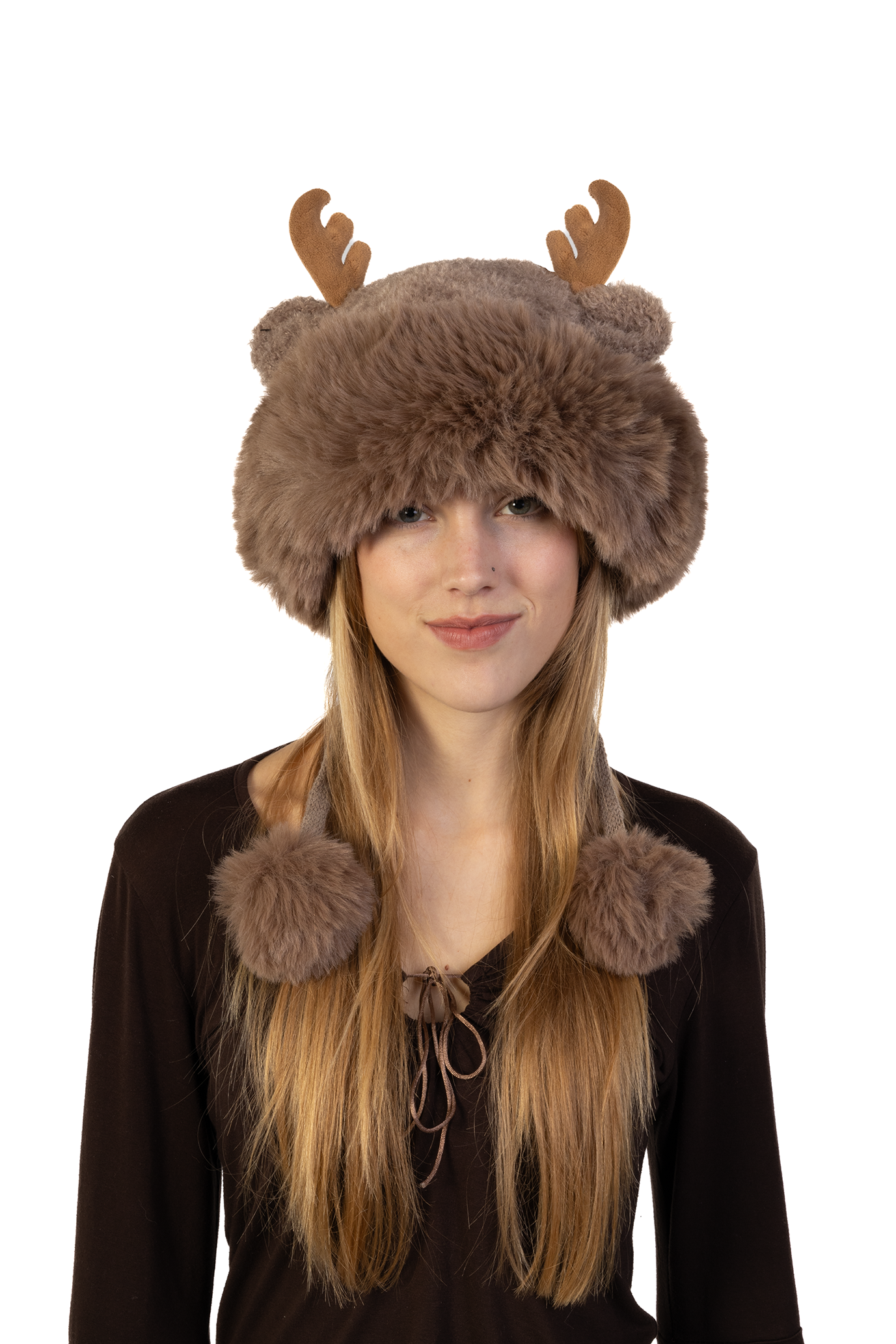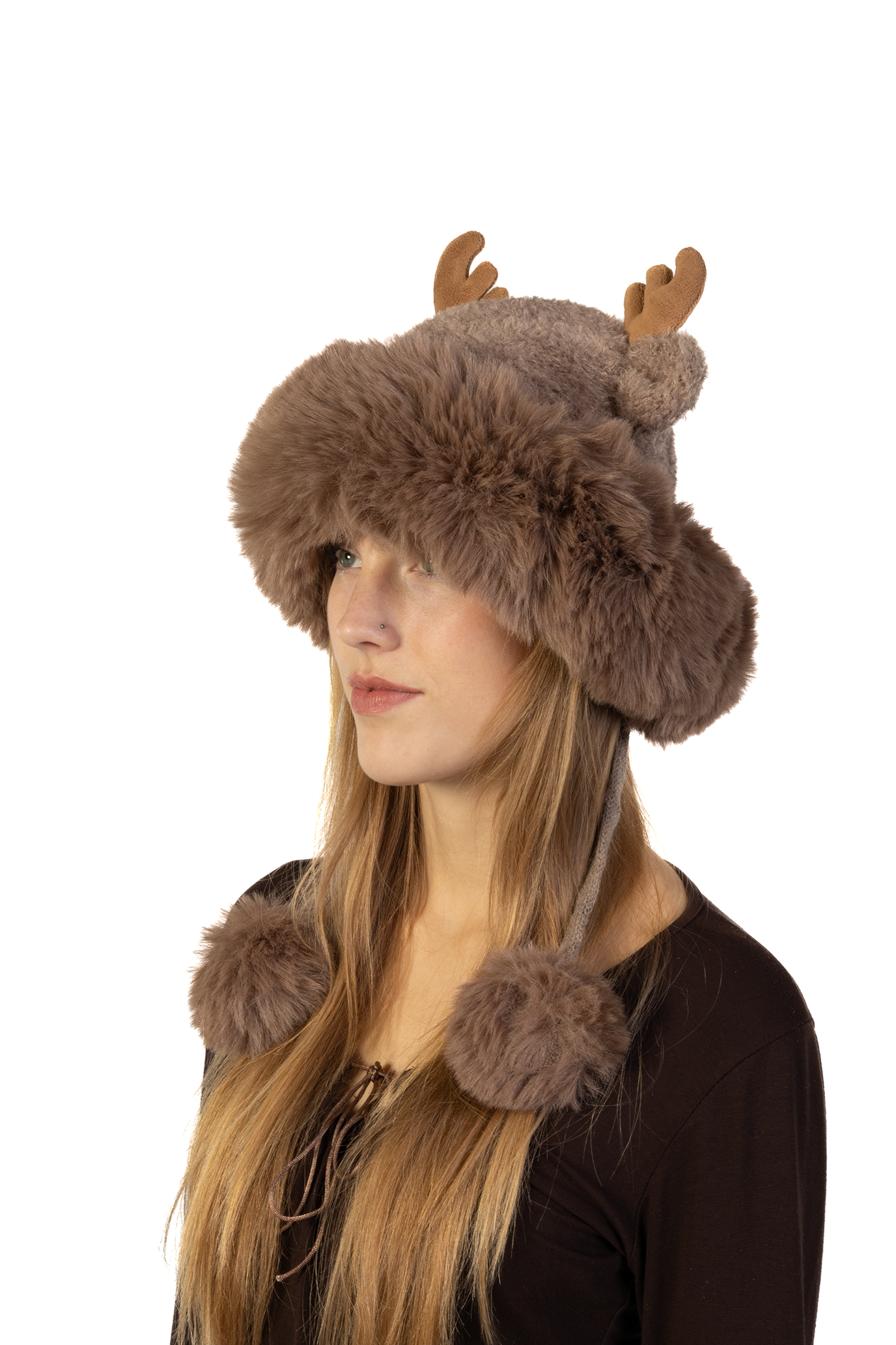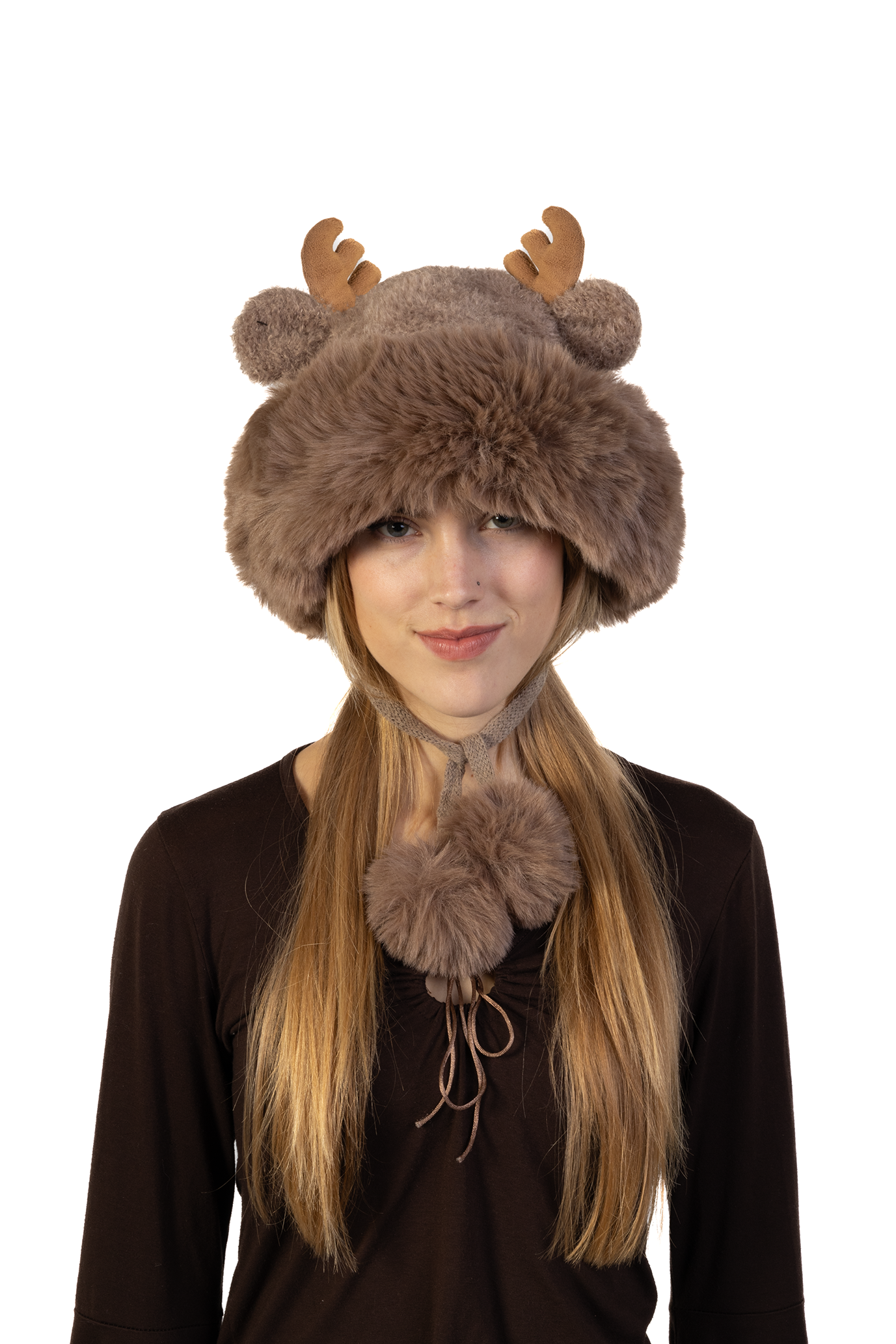 Muts Rendier Fleece Ballen Donkerbruin Hoorns Touwtjes Gewei Eland Hert kopen?