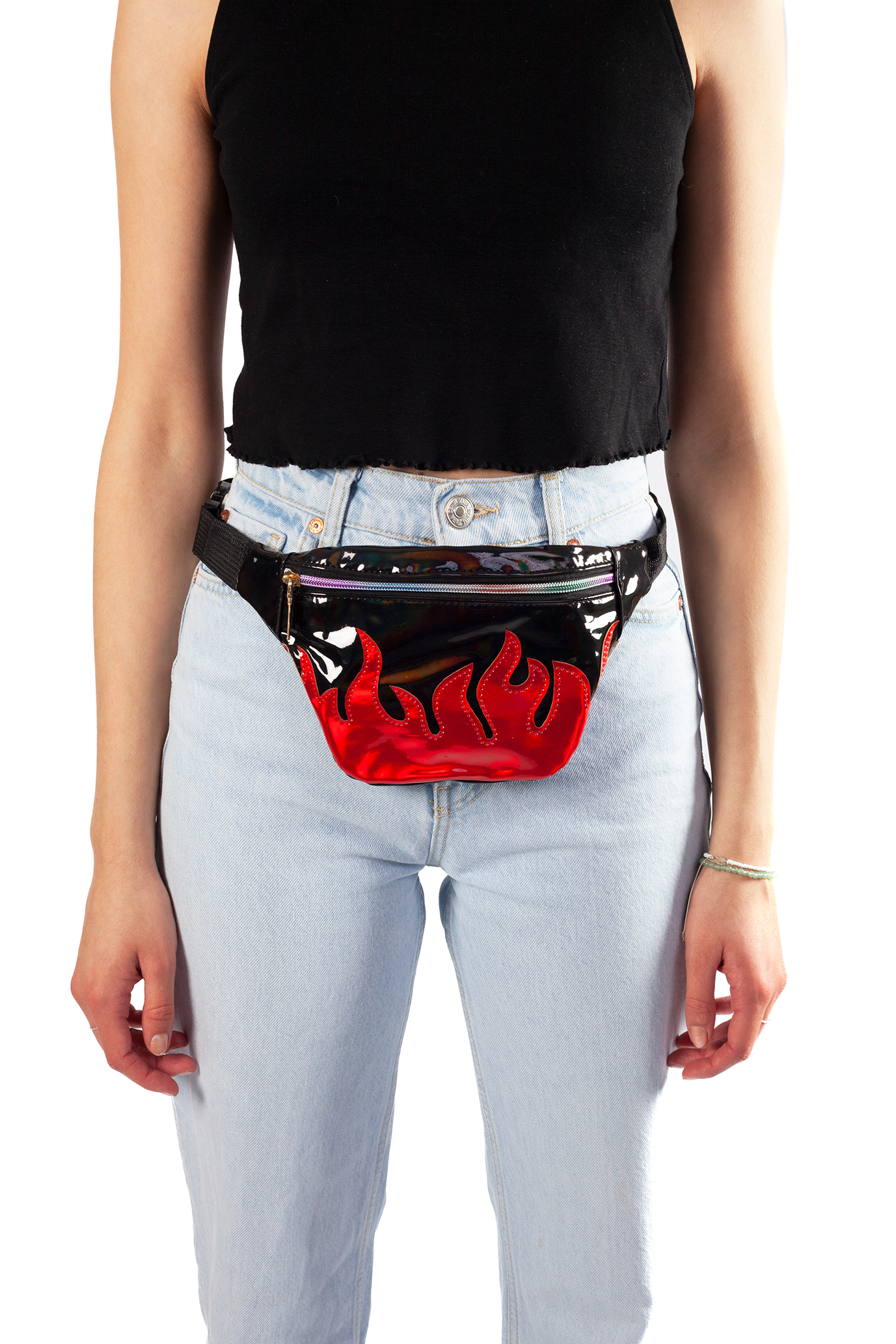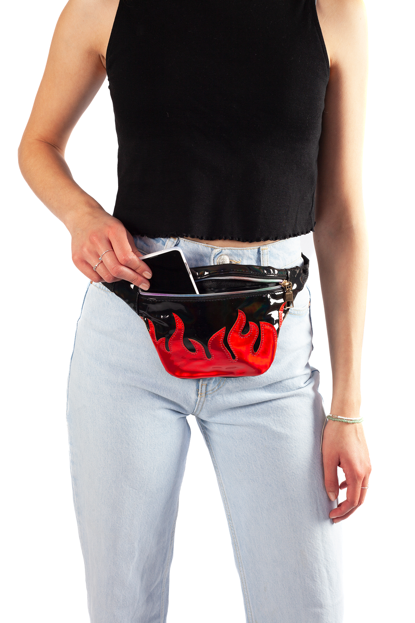 Zwart heuptasje fanny pack rode vlammen